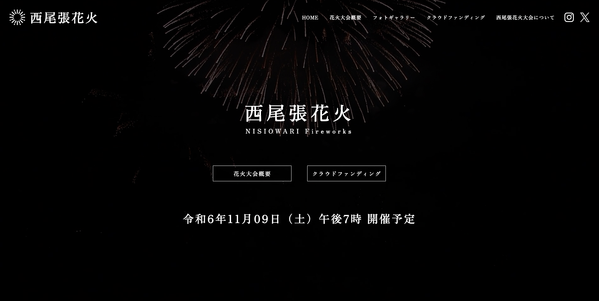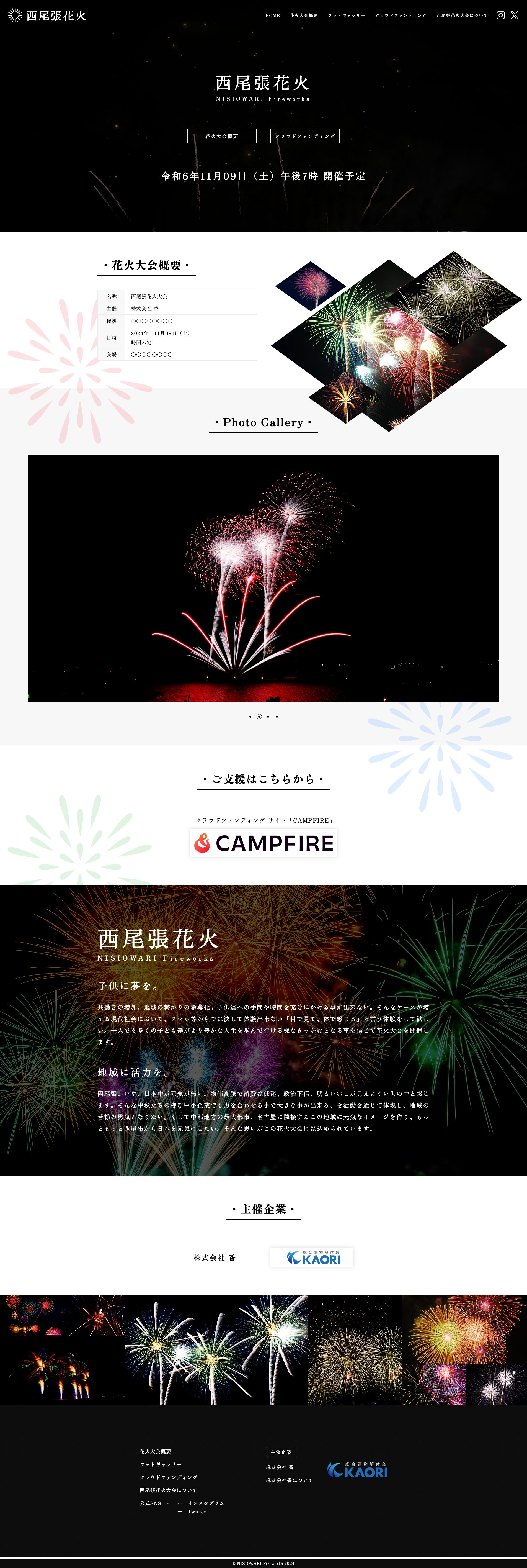 HOME > 制作実績 > 制作実績【西尾張花火様】 制作実績【西尾張花火様】 西尾張花火様 愛知県 URL : https://labos-gallery.com/nisiowarifireworks/ 制作者からコメント -GALLERY-